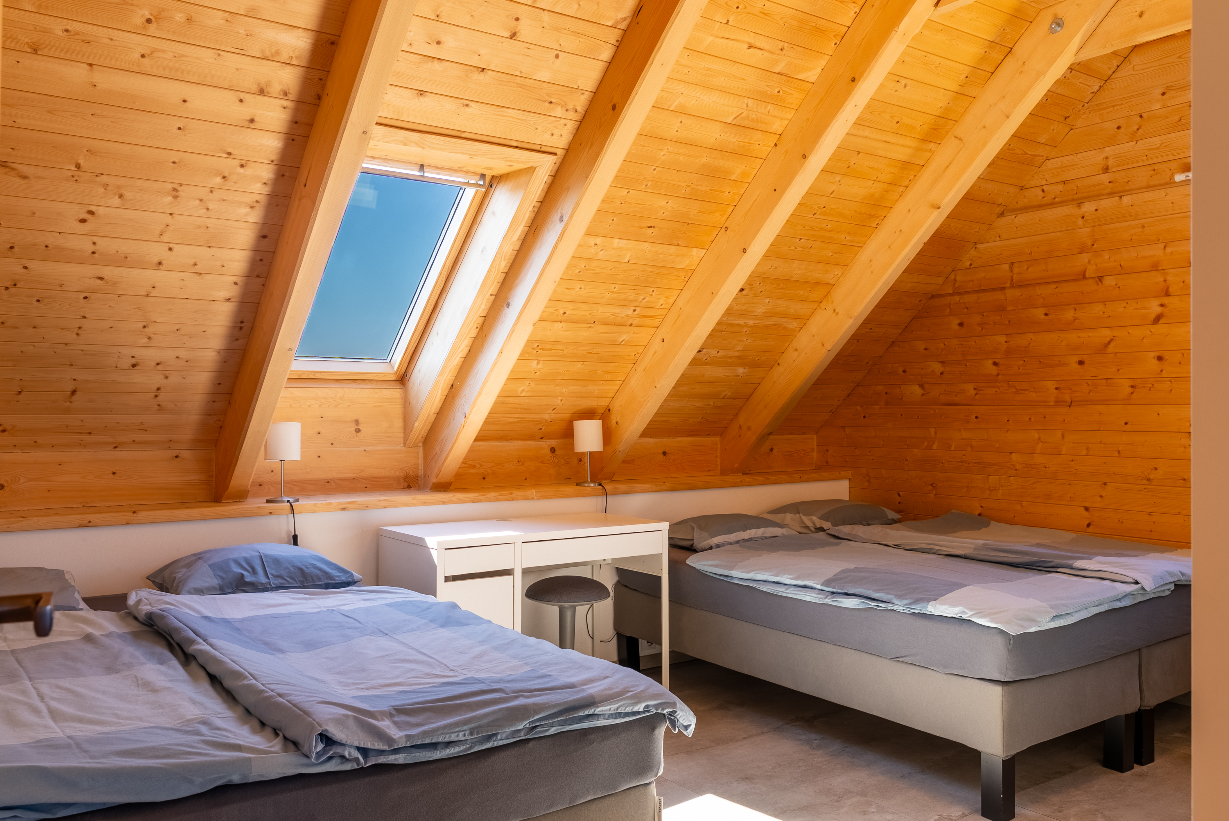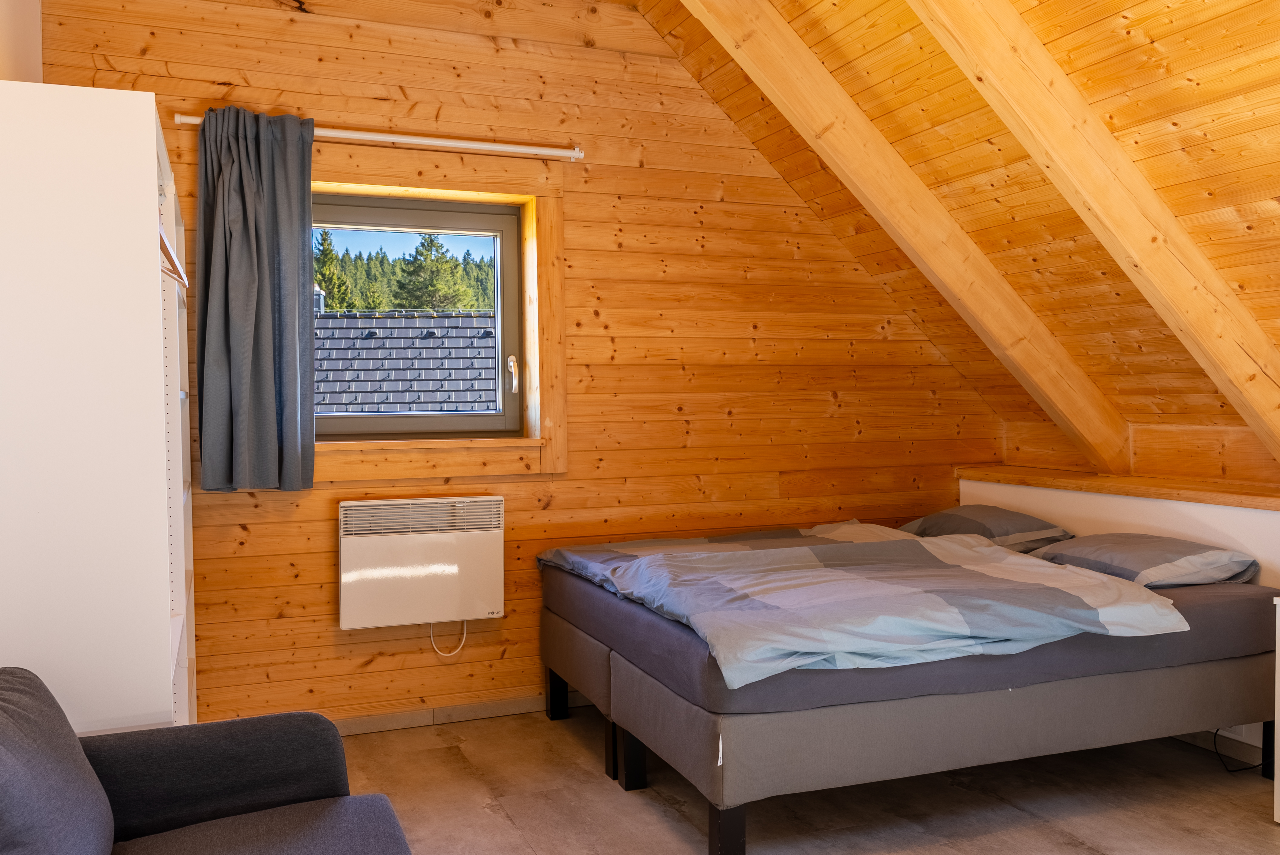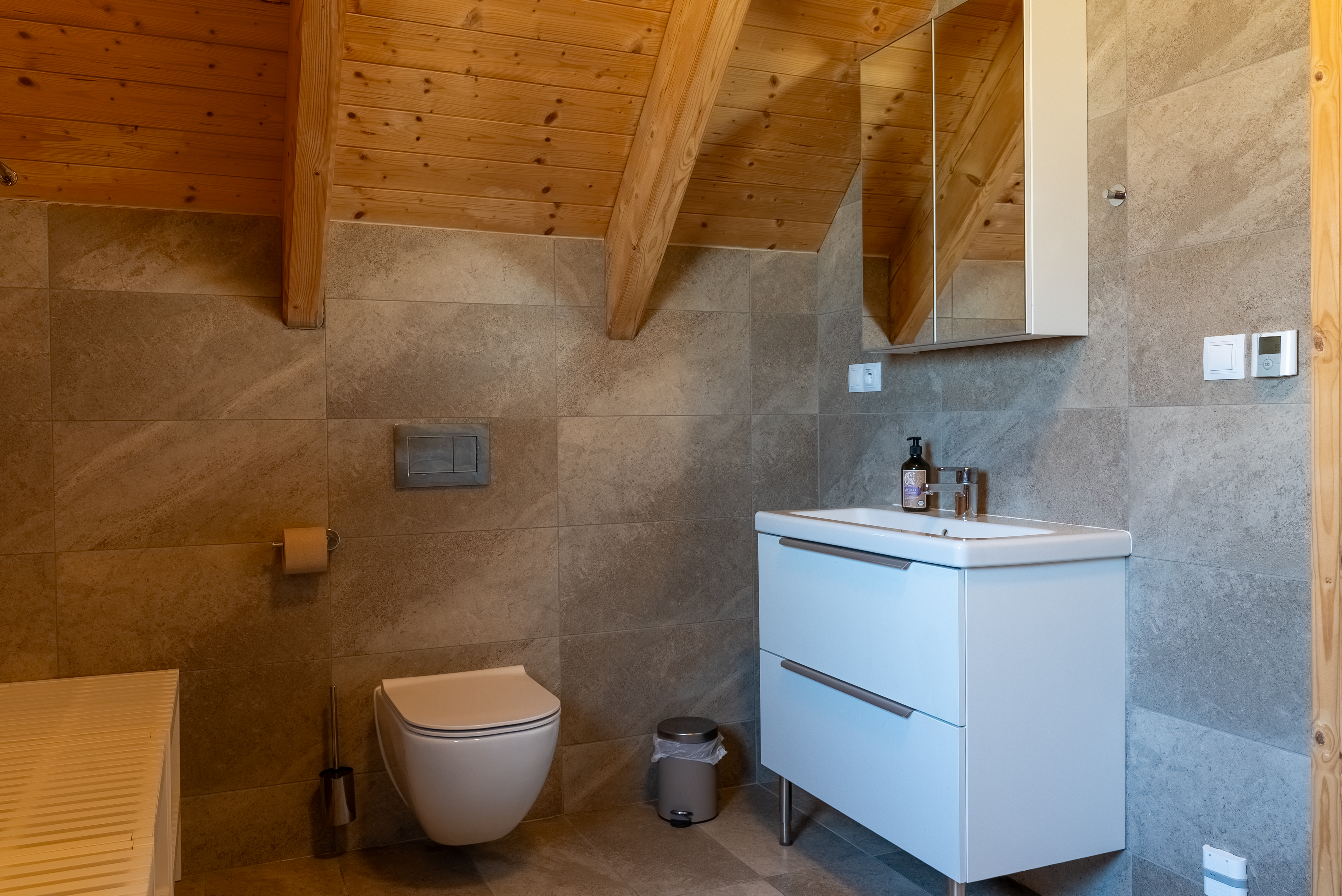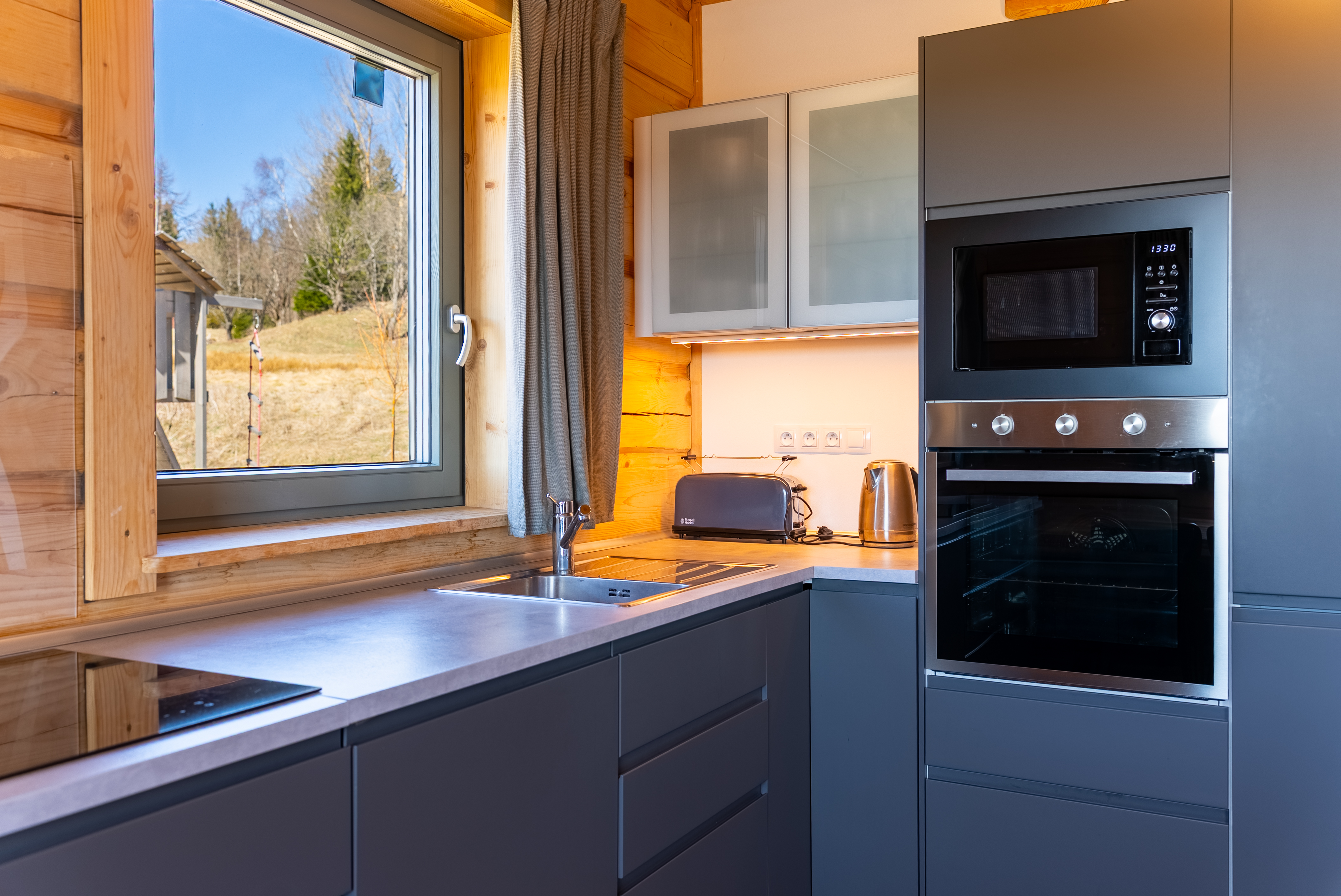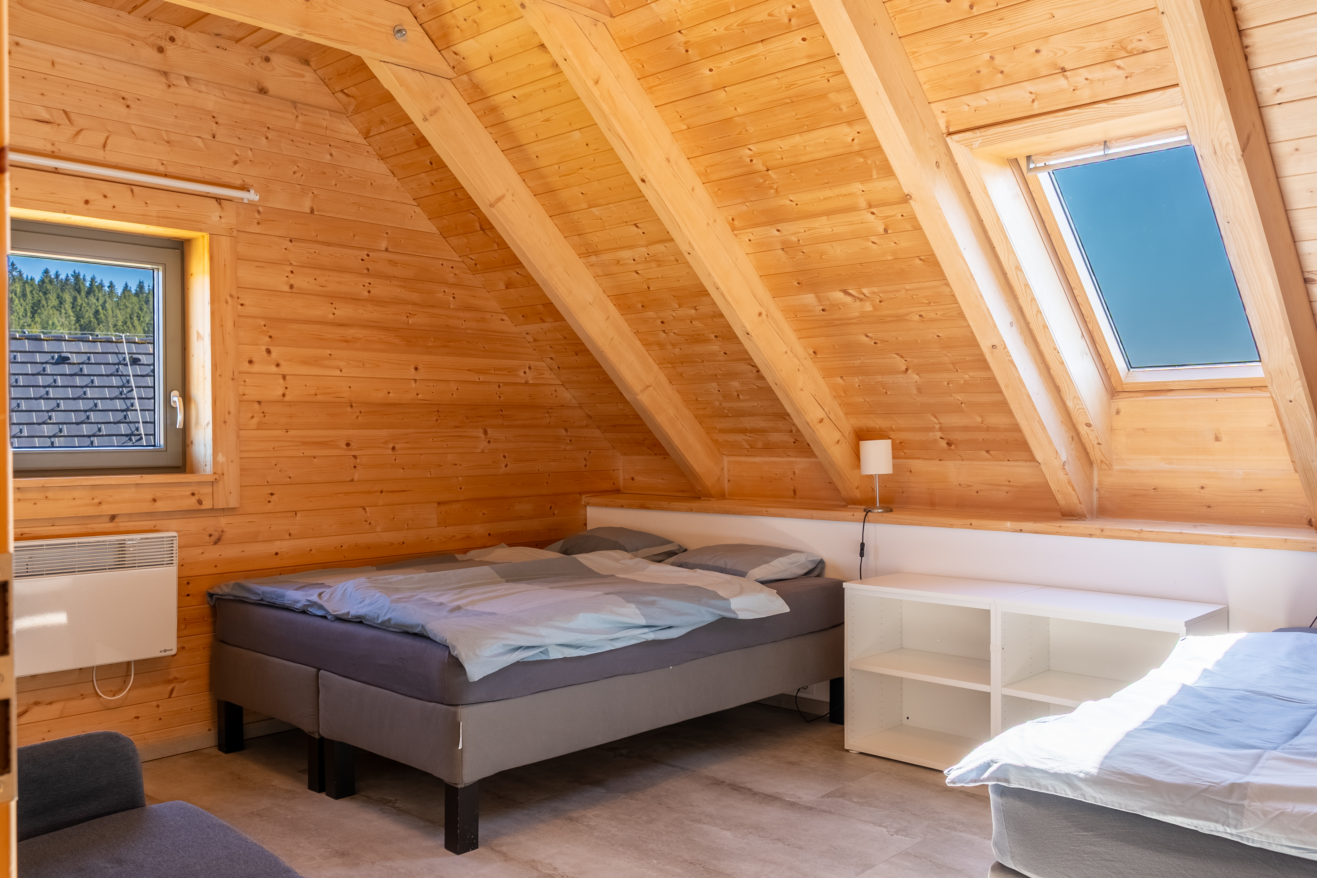 Naše prostřední roubenka je moderně zařízená s veškerým komfortem pro hosty včetně krbových kamen pro radost z pobytu na horách. Lyže, kola i kočárky uložíte v prostorné lyžárně, zaparkujete přímo před domem.
